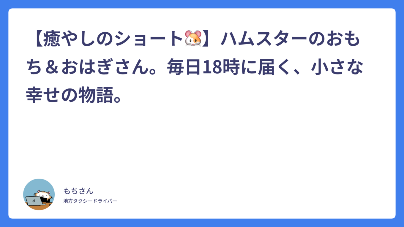 【癒やしのショート🐹】ハムスターのおもち&おはぎさん。毎日18時に届く、小さな幸せの物語。